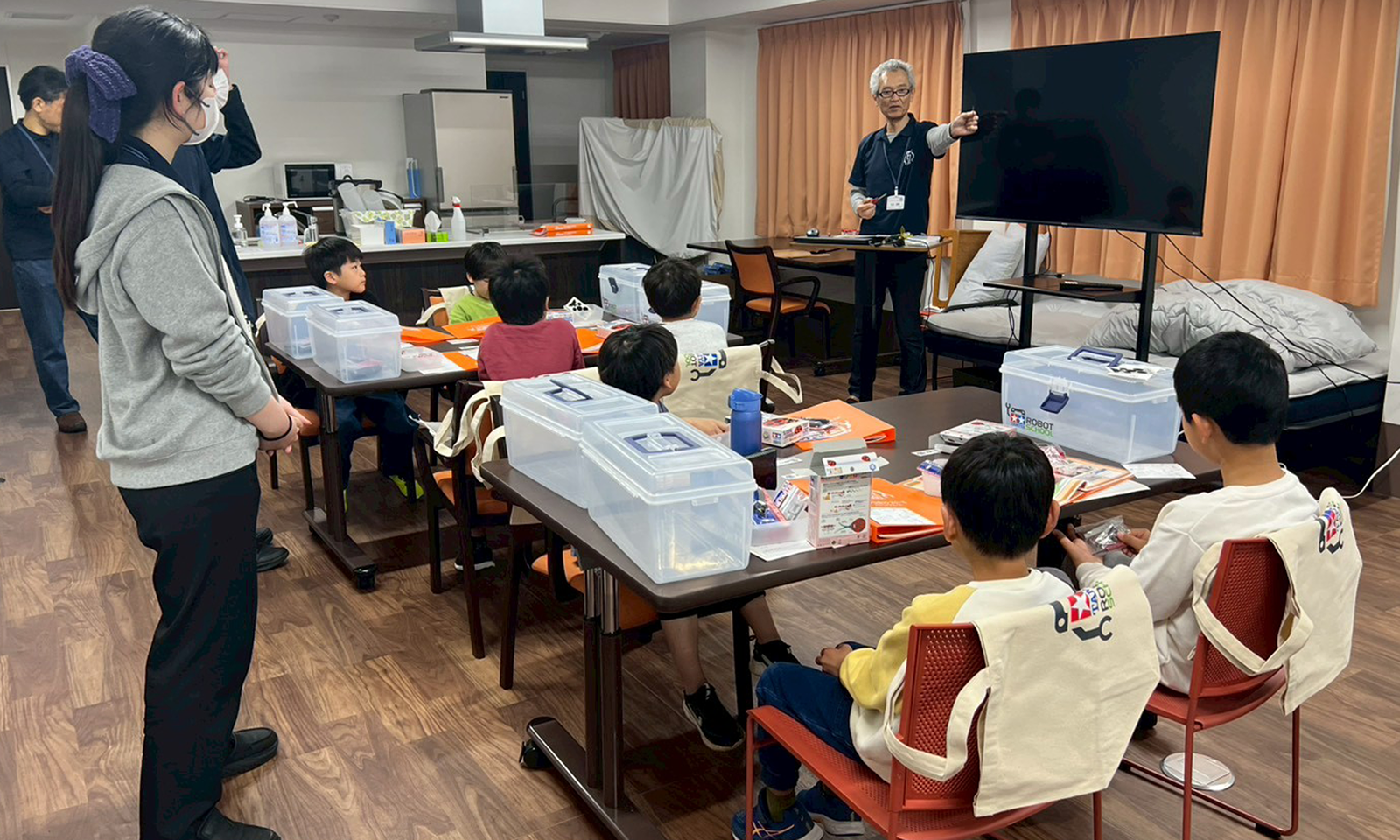 子供の頃から物を作る事が好きで、今では身近な不便を改善しています。このタミヤロボットスクールでは、子供たちと一緒に物作りを楽しみ、「観察して工夫する思考力を身につけて欲しい」と思っています。